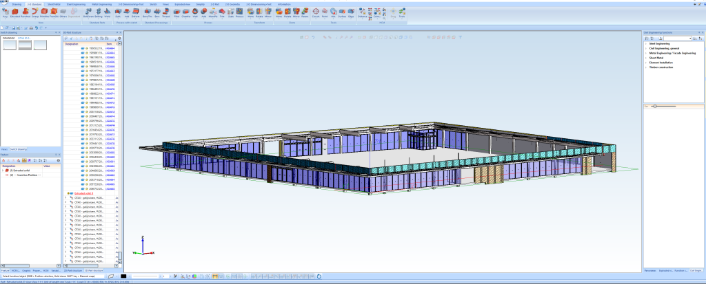 De software heeft een bi-directionele koppeling met LogiKal© en een standaard productenbibliotheek met Alucobond© panelen. Hierdoor kunnen snel kozijnen en gevelelementen in je CAD-model geplaatst worden. Met één druk op de knop genereer je daarnaast gemakkelijk verschillende productiedocumenten. Hierdoor kan het model rechtstreeks worden doorgezet naar productie, maar is ook alle informatie aanwezig voor het gehele BIM-proces. Tot slot biedt HiCAD verschillende modules aan, zodat deze altijd aansluiten op de wensen en behoeftes van onze klanten.